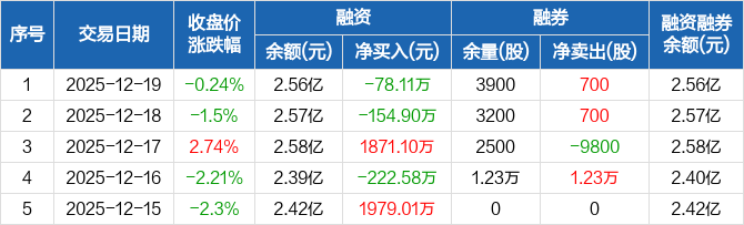 兴瑞科技:融资净偿还78.11万元,融资余额2.56亿元(12-19)