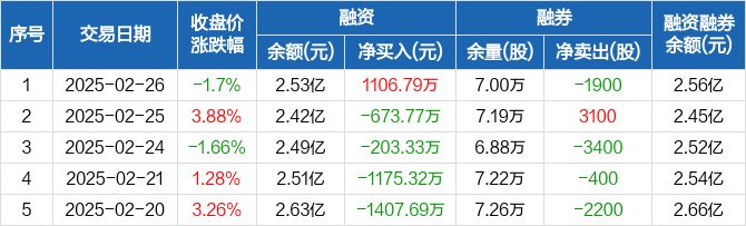 鹏鼎控股:融资净买入1106.79万元,融资余额2.53亿元(02-26)