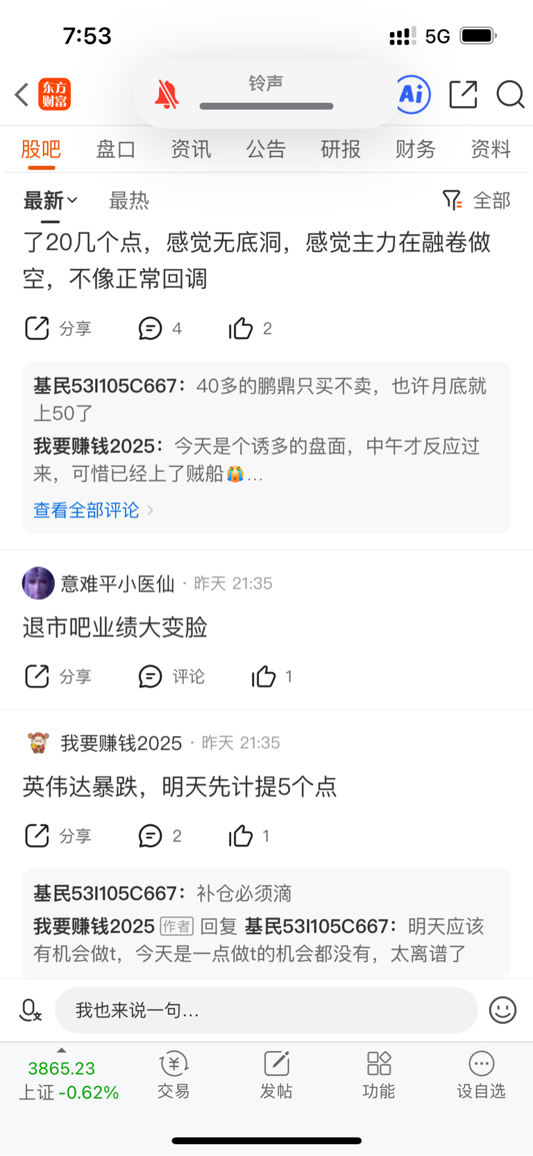 温馨提示: 1.根据《证券法》规定,禁止编造、传播虚假信息或者误导性信息,扰乱证券市场;2.用户在本社区发表的所有资料、言论等仅代表个人观点,与本网站立场无关,不对您构成任何投资建议。用户应基于自己的独立判断,自行决定证券投资并承担相应风险。《东方财富社区管理规定》