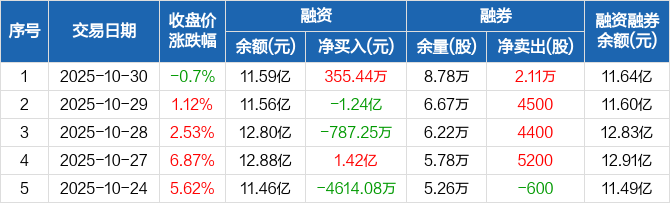 鹏鼎控股:融资净买入355.44万元,融资余额11.59亿元(10-30)