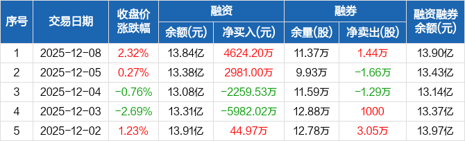 鹏鼎控股:融资净买入4624.2万元,融资余额13.84亿元(12-08)
