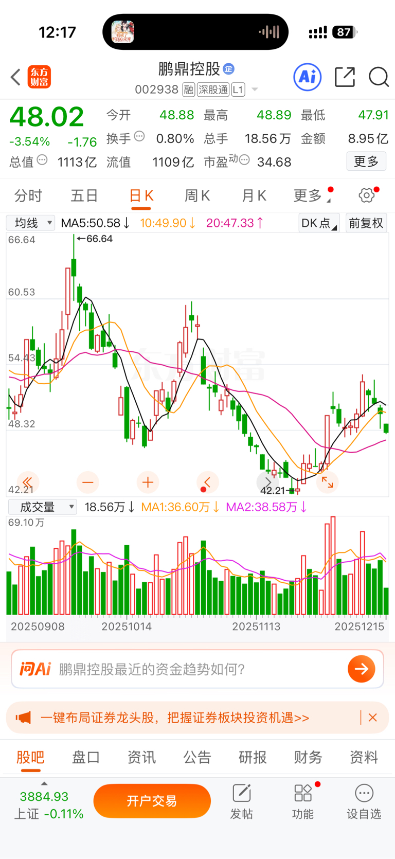$鹏鼎控股(SZ002938)$ 三浪下跌,这波40以下企稳