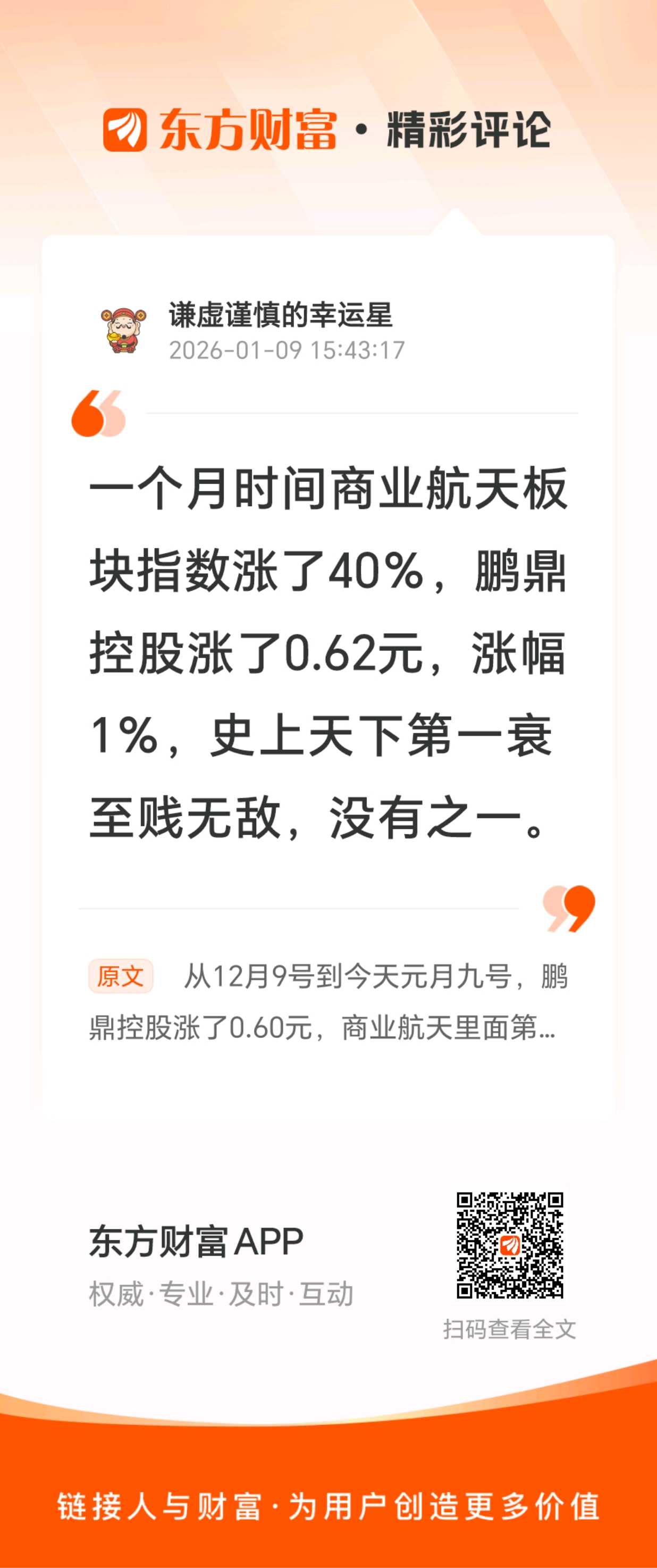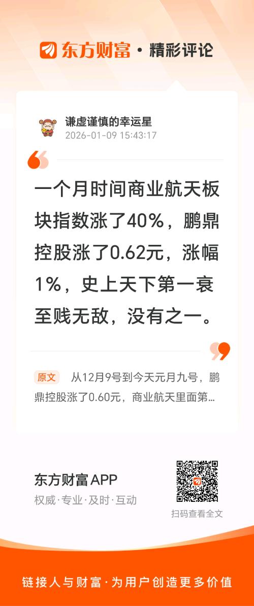从12月9号到今天元月九号,鹏鼎控股涨了0.60元,商业航天里面第一衰至贱无敌,没有之一