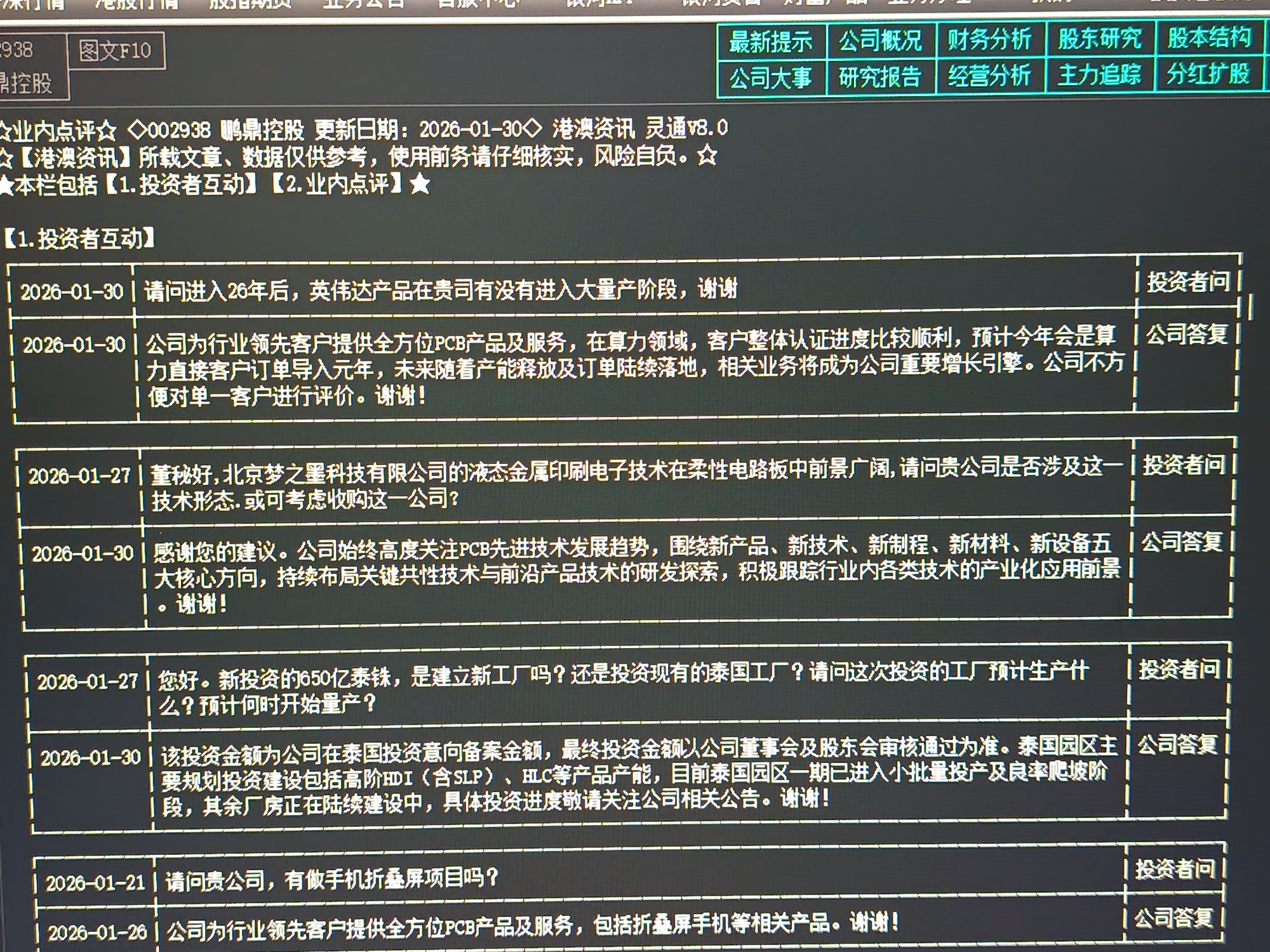 电脑里看到会司答复投资者