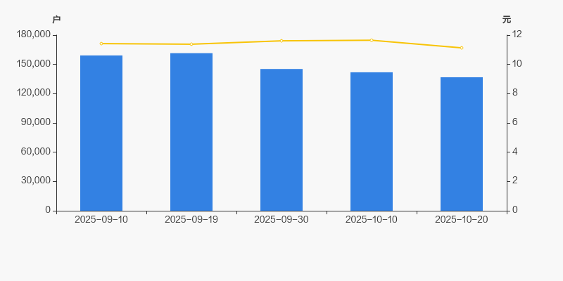 自2025年9月19日以来,公司股东户数连续3期下降,截至目前减幅为15.27%。2025年9月19日至2025年10月20日区间股价下降2.20%。