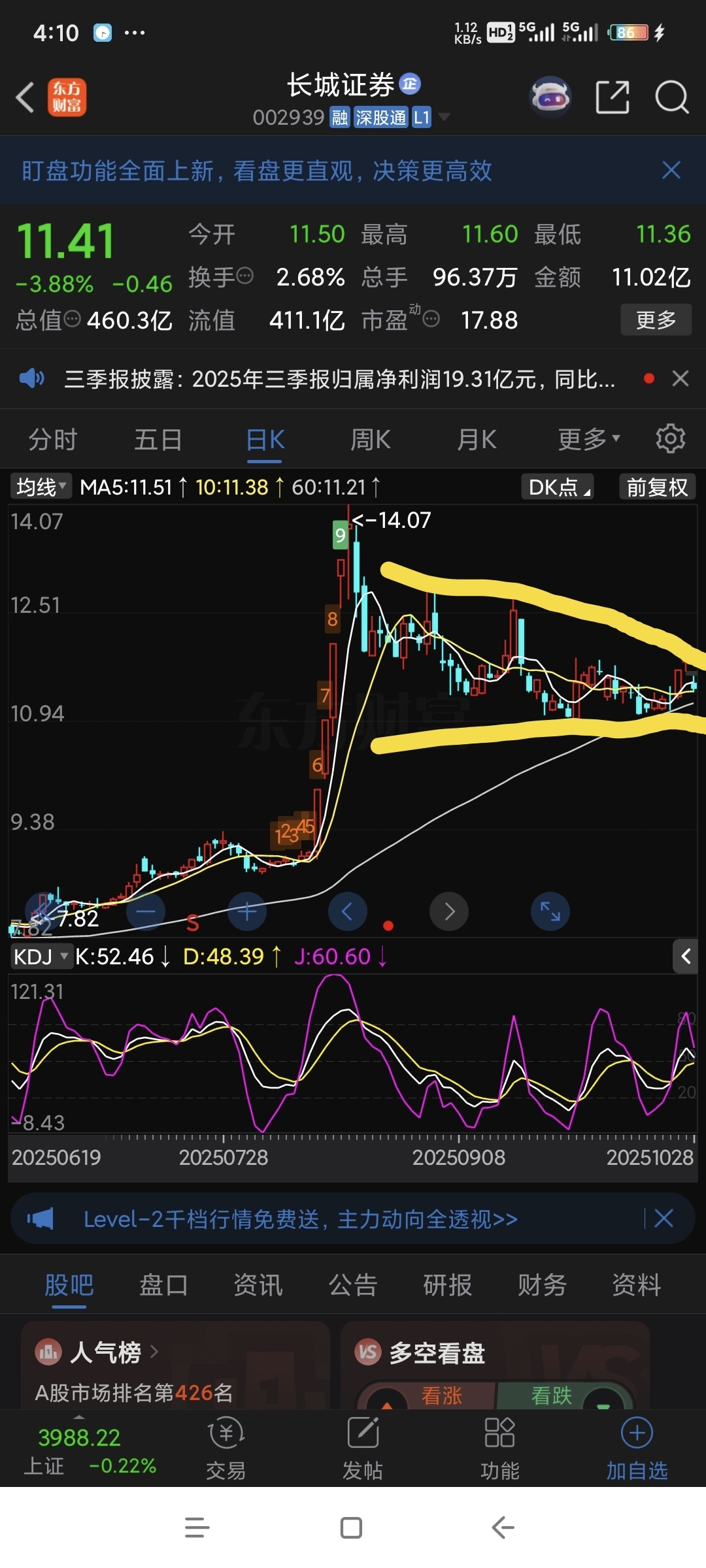 $长城证券(SZ002939)$ 现在k线图是典型的下降三角形,有效支撑位是11元,如跌破11元支撑位就很大机会单边下跌行情,大概会到10元左右,三角形越来越窄了,过不了多久可能就会选择方向,现在等方向明朗再操作