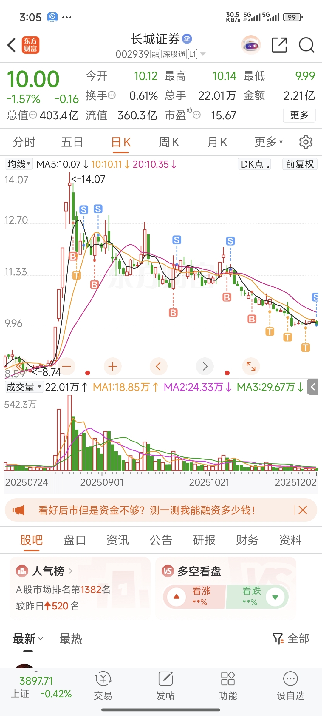 $长城证券(SZ002939)$ 我怕了,今天清仓了,我觉得莫名其妙的一直降肯定有我不知道的问题,还是安全起见清仓,亏10个点。(主力看到可以拉了)