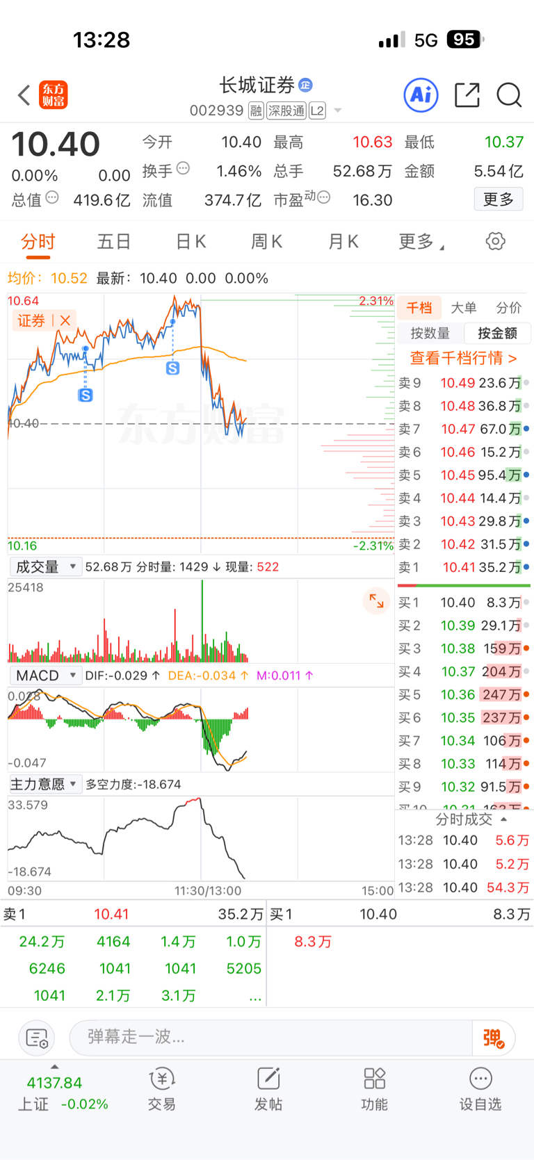 $长城证券(SZ002939)$ 还好早上跑了,涨的不对劲