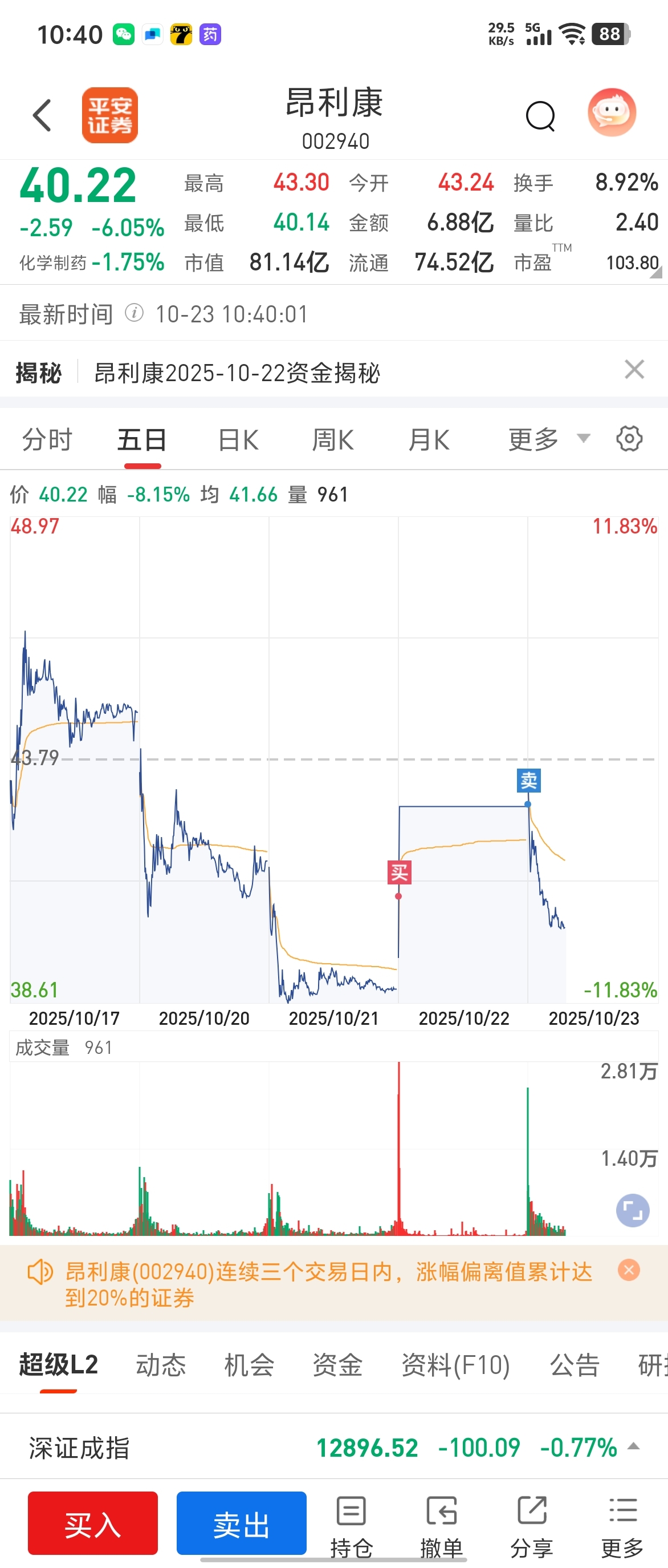 $昂利康(SZ002940)$ 竞价不及预期,哈三联、亚太都不及预期,开盘后不能迅速拉大阳,果断割肉。转头满仓$格尔软件(SH603232)$ 三天喜获三个板。前天$上海电力(SH600021)$ 不格局,套利为主。