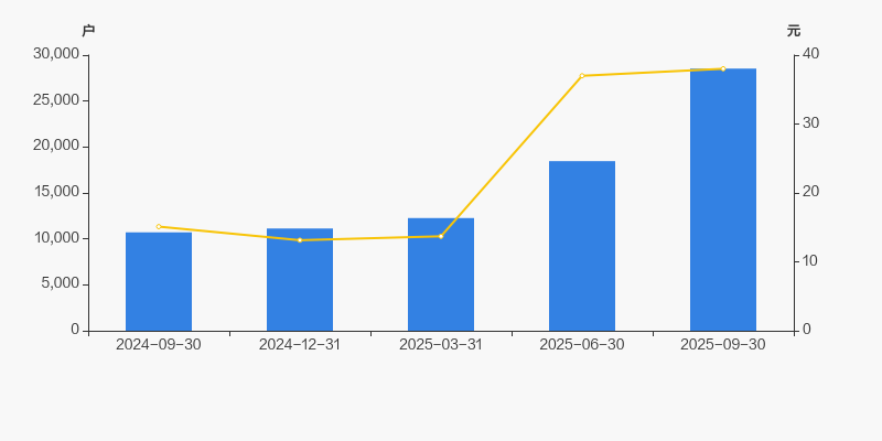 2024年9月30日至今,公司股东户数成倍增长,区间涨幅达166.36%。2024年9月30日至2025年9月30日区间股价上涨151.69%。