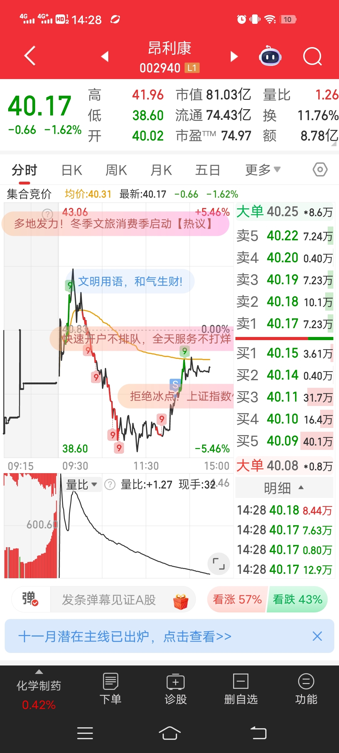 $昂利康(SZ002940)$ 早上卖了啥事没有,玩不过