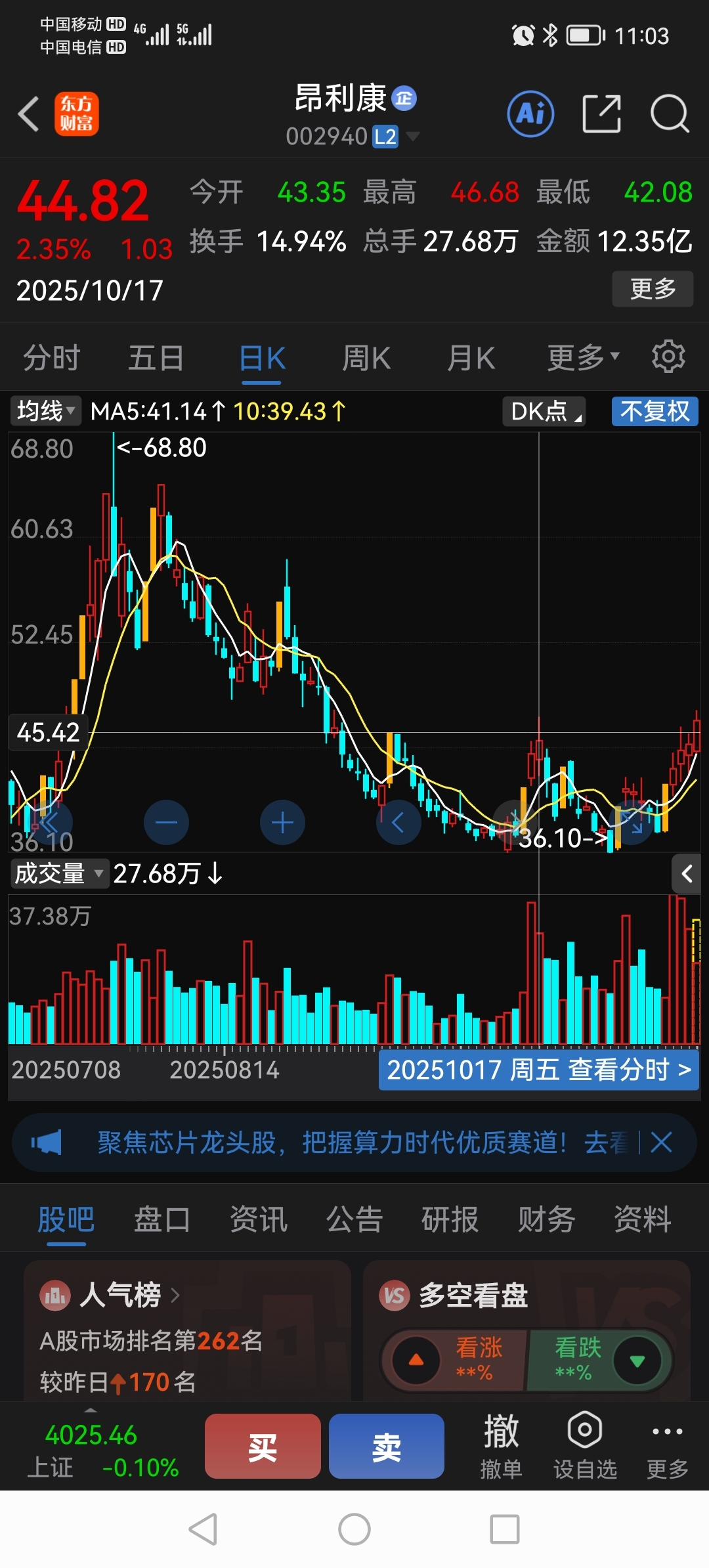 $昂利康(SZ002940)$ 这个形态感觉挺好的,牛牛组合,底下时不时有个涨停,