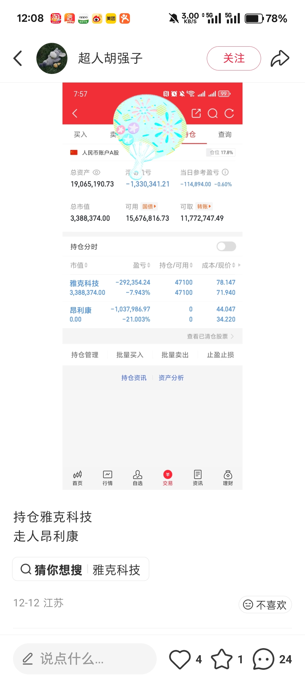 $昂利康(SZ002940)$ 这哥们砸的一千多w
