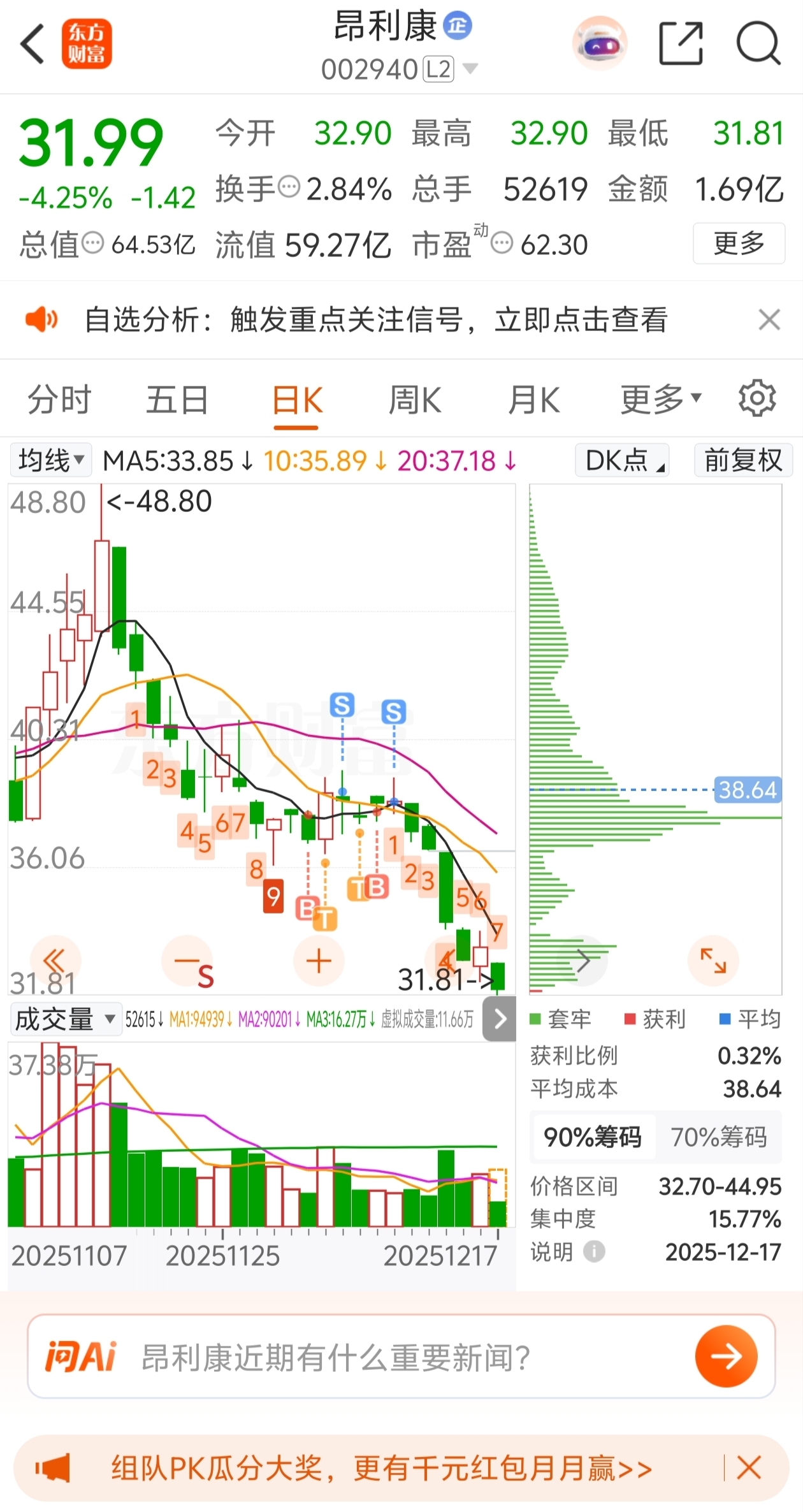 $昂利康(SZ002940)$ 太危险了,运气好,鬼使神差的把它全卖了。