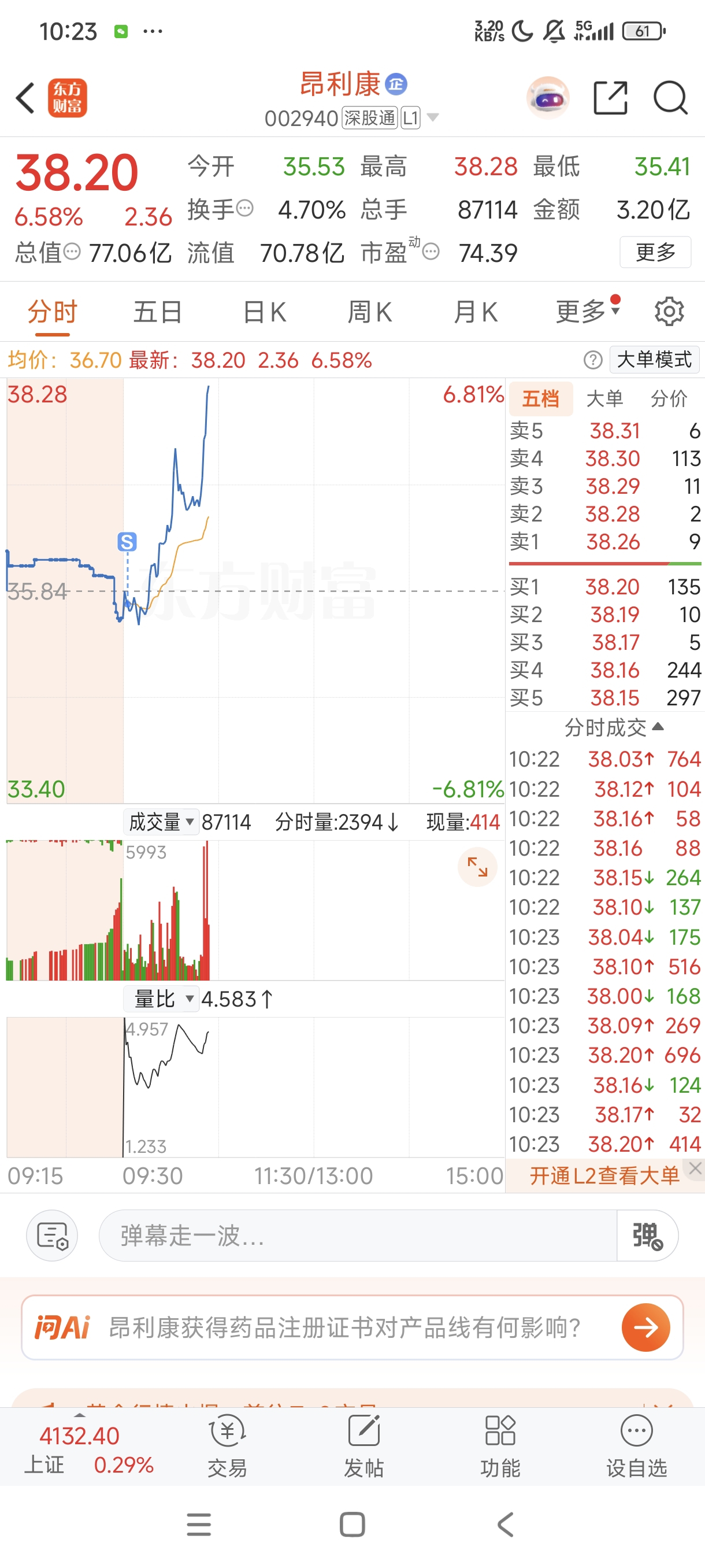 $昂利康(SZ002940)$ 只要卖的,都瞬间起飞