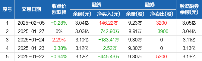 新疆交建:融资净买入146.22万元,融资余额3.04亿元(02-05)