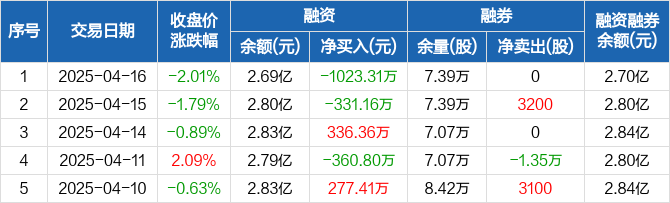 新疆交建:融资净偿还1023.31万元,融资余额2.69亿元(04-16)