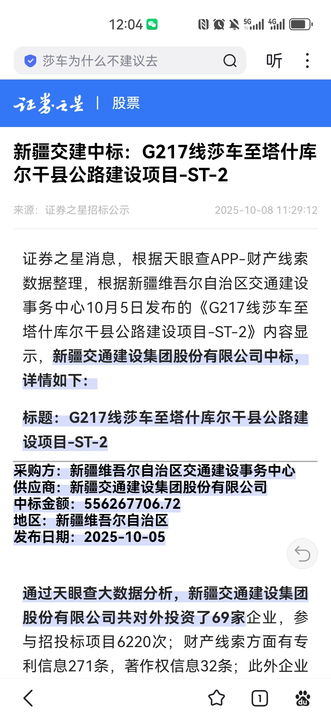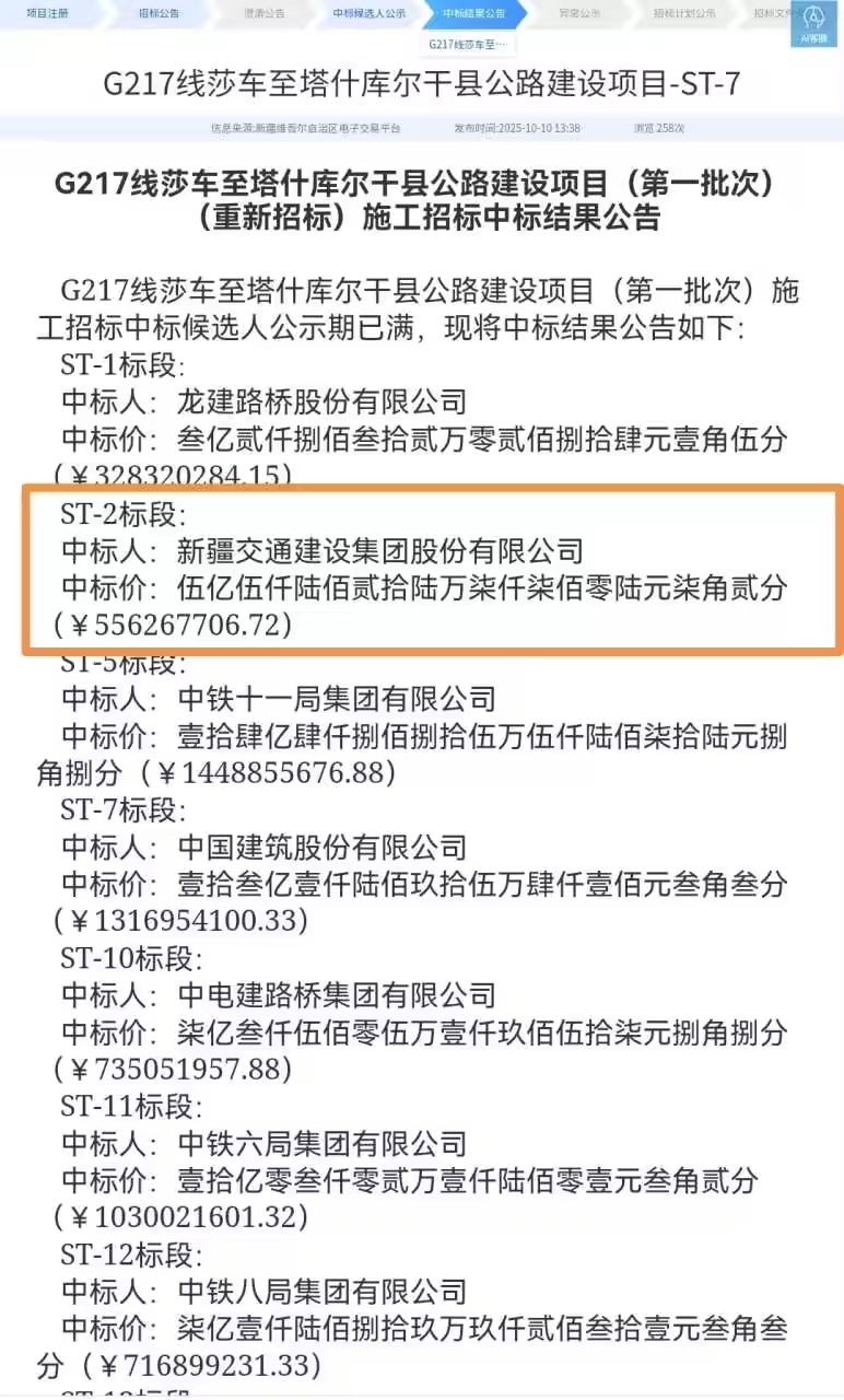 证券之星,G217高速公路ST-2标段中标5.56亿,10月10日公示期结束。什
