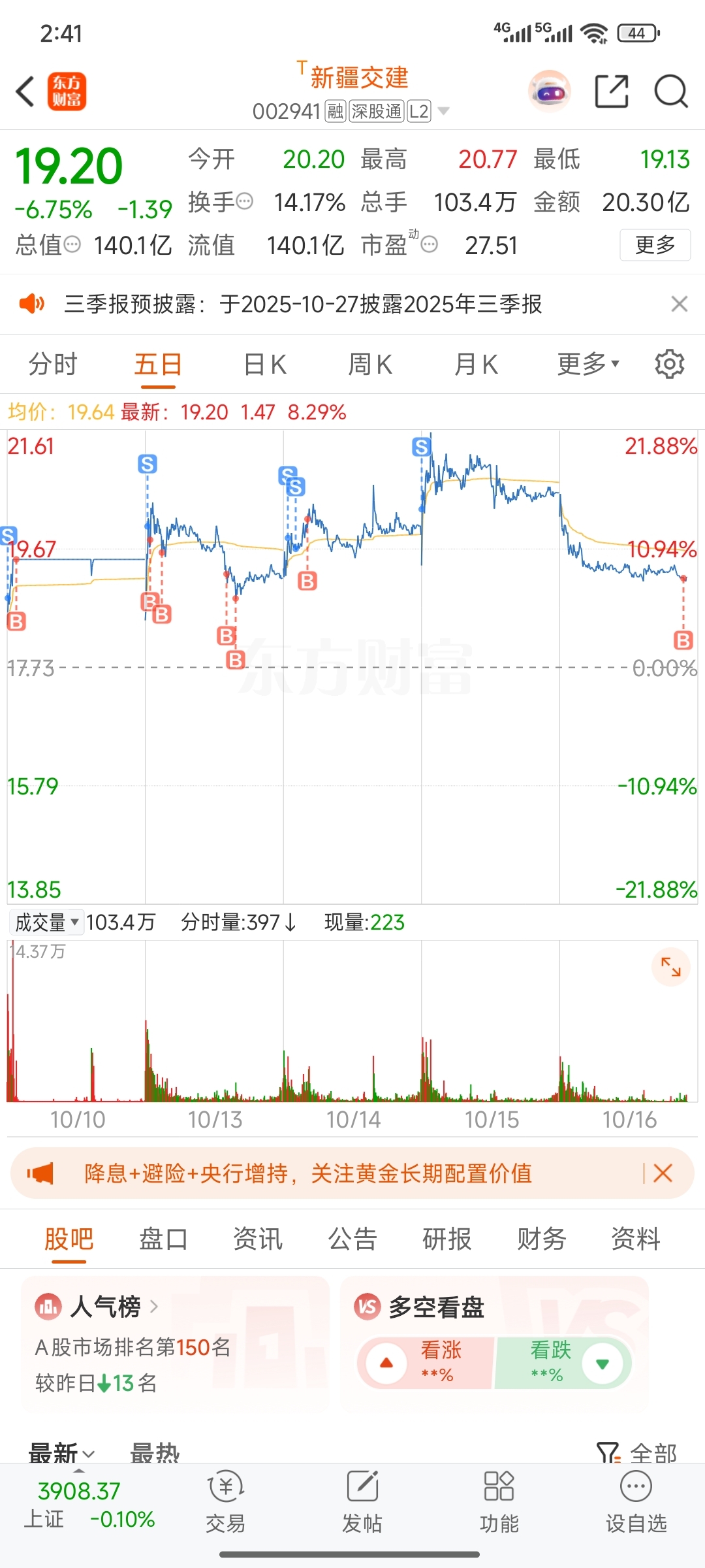 $新疆交建(SZ002941)$ 不开新仓了。玩老票