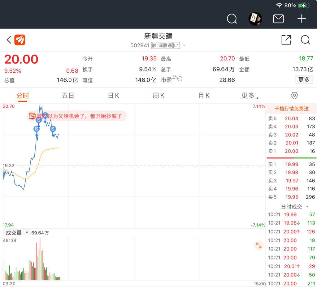 $新疆交建(SZ002941)$ 跑了,太格局了,没赚钱