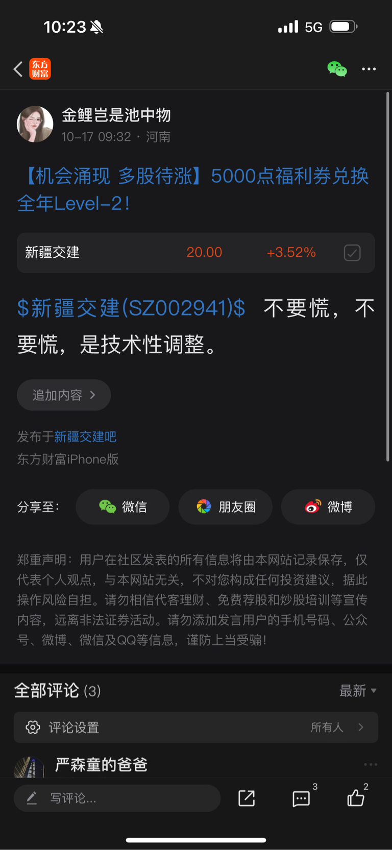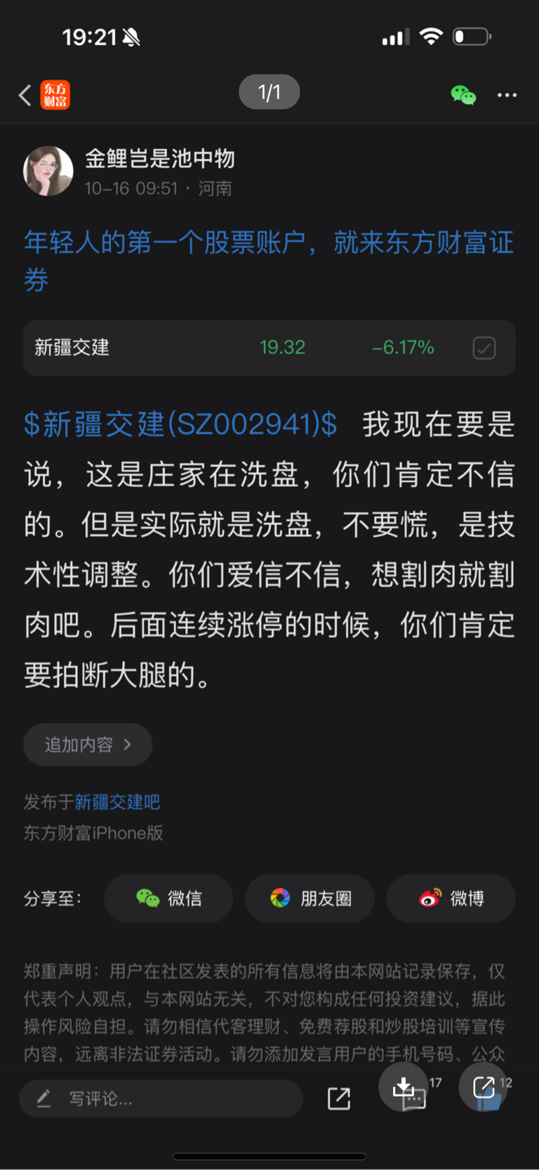 温馨提示: 1.根据《证券法》规定,禁止编造、传播虚假信息或者误导性信息,扰乱证券市场;2.用户在本社区发表的所有资料、言论等仅代表个人观点,与本网站立场无关,不对您构成任何投资建议。用户应基于自己的独立判断,自行决定证券投资并承担相应风险。《东方财富社区管理规定》