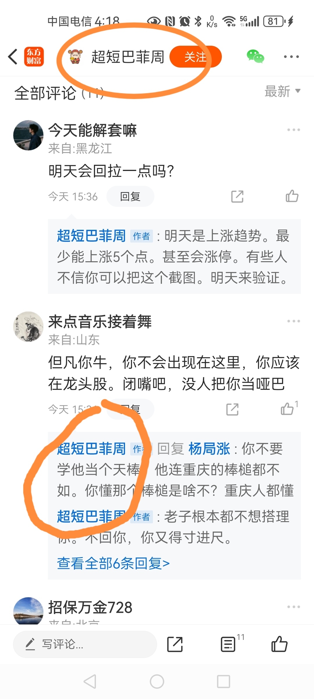 这货满仓单吊新疆交建,叫嚣今天必须涨5个点,谁有不同意见,立马就拉黑。在他眼里,
