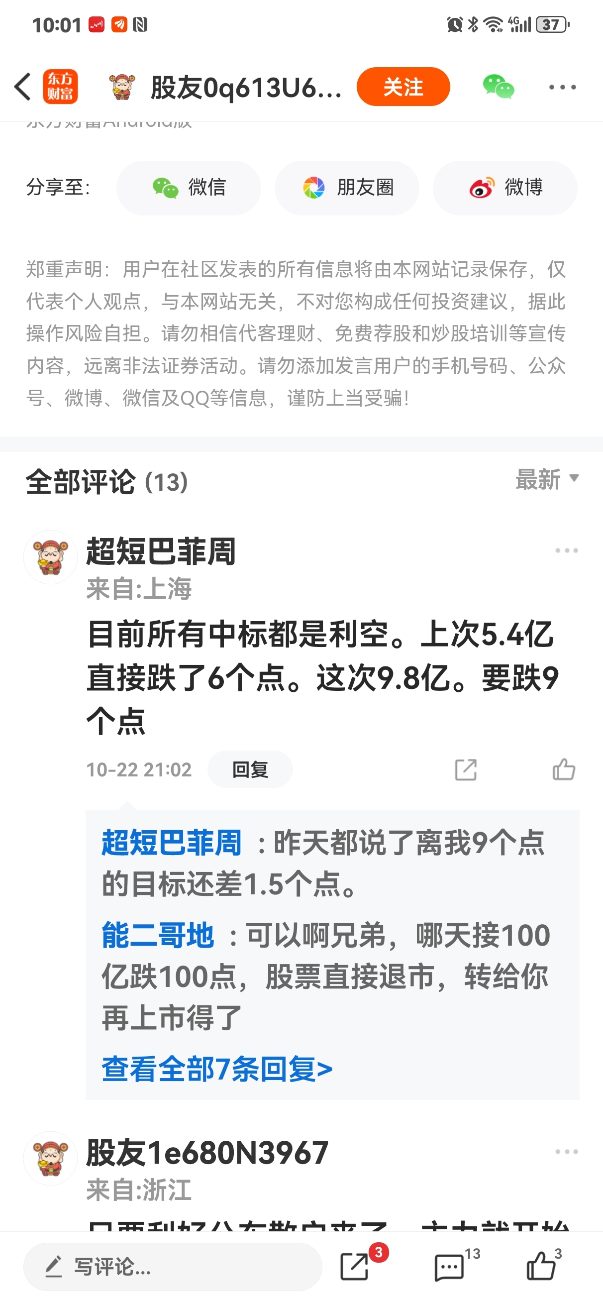 温馨提示: 1.根据《证券法》规定,禁止编造、传播虚假信息或者误导性信息,扰乱证券市场;2.用户在本社区发表的所有资料、言论等仅代表个人观点,与本网站立场无关,不对您构成任何投资建议。用户应基于自己的独立判断,自行决定证券投资并承担相应风险。《东方财富社区管理规定》