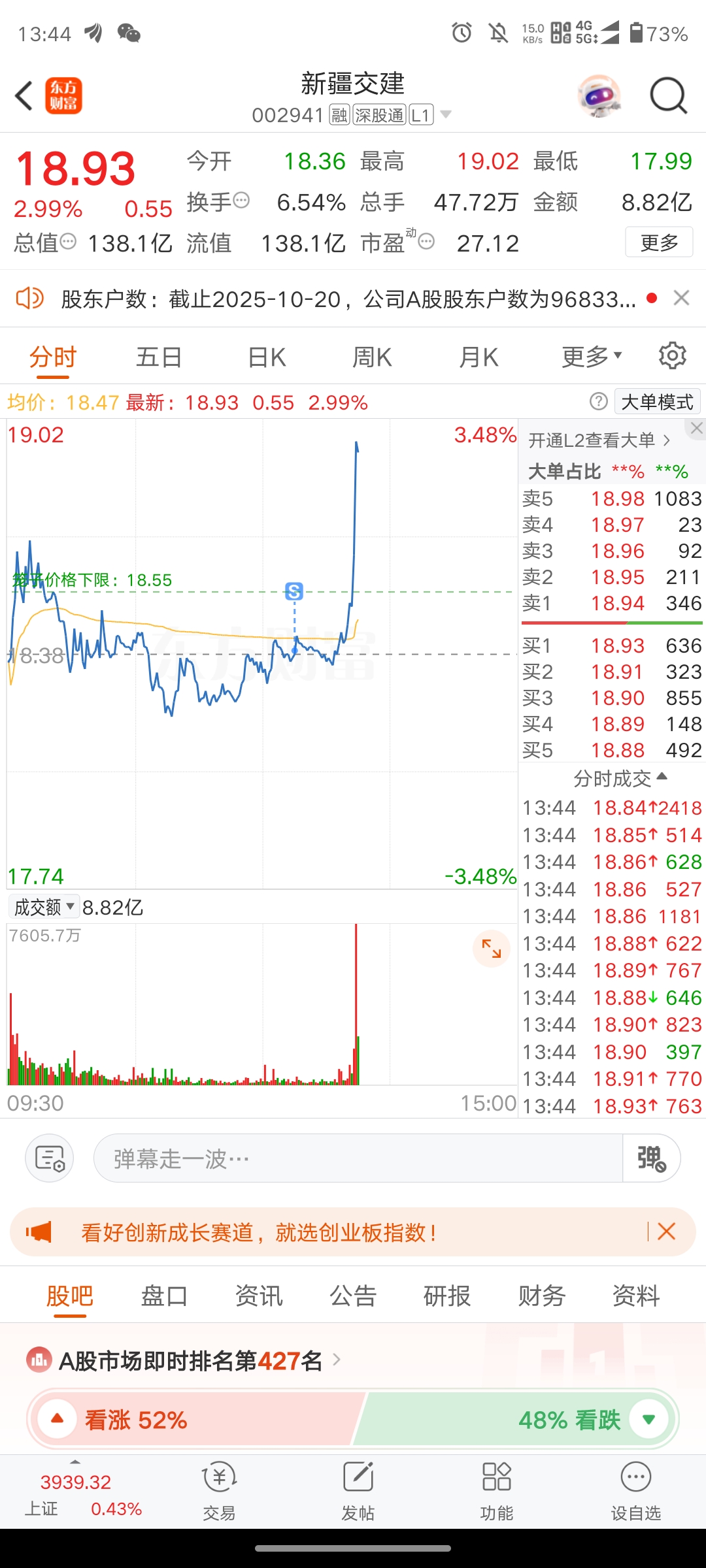 $新疆交建(SZ002941)$ 刚卖了一分钟