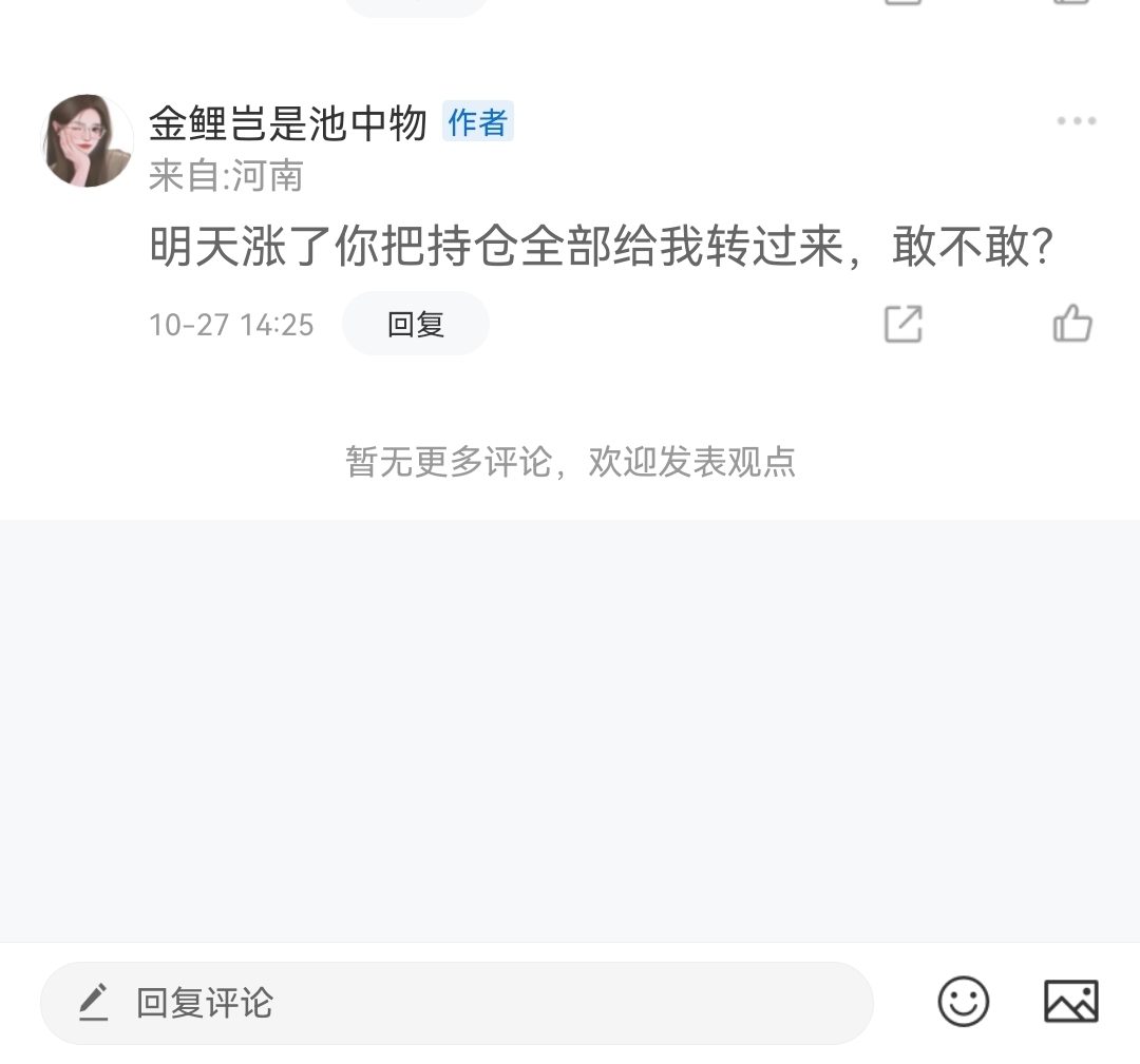 温馨提示: 1.根据《证券法》规定,禁止编造、传播虚假信息或者误导性信息,扰乱证券市场;2.用户在本社区发表的所有资料、言论等仅代表个人观点,与本网站立场无关,不对您构成任何投资建议。用户应基于自己的独立判断,自行决定证券投资并承担相应风险。《东方财富社区管理规定》