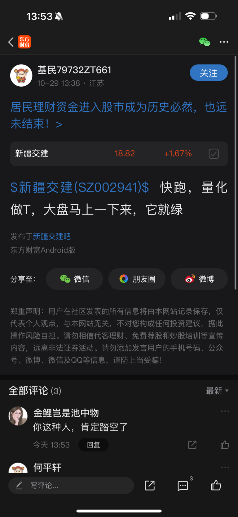 温馨提示: 1.根据《证券法》规定,禁止编造、传播虚假信息或者误导性信息,扰乱证券市场;2.用户在本社区发表的所有资料、言论等仅代表个人观点,与本网站立场无关,不对您构成任何投资建议。用户应基于自己的独立判断,自行决定证券投资并承担相应风险。《东方财富社区管理规定》