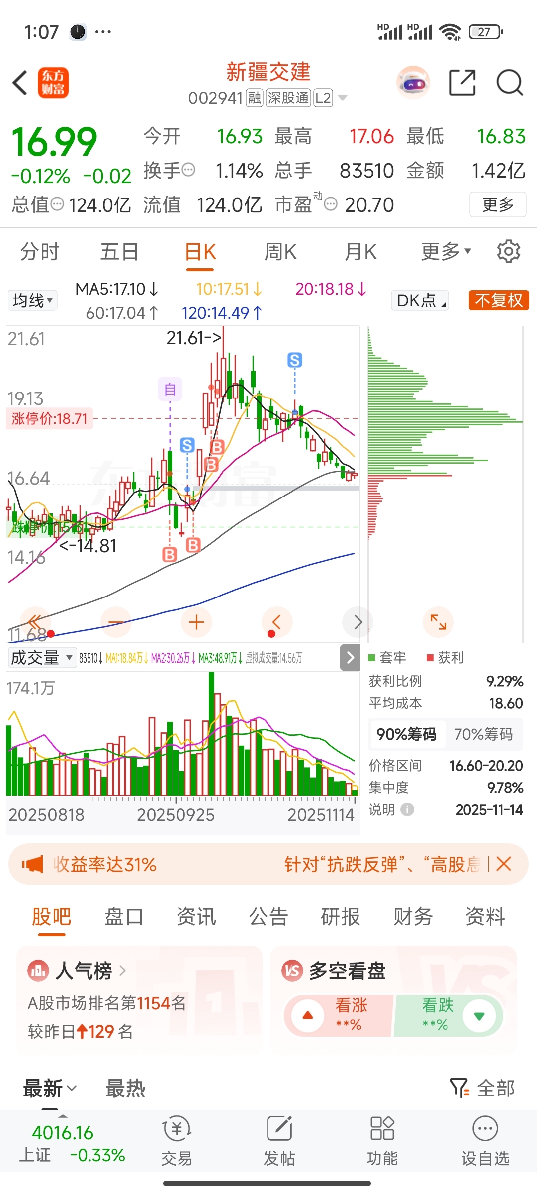 $新疆交建(SZ002941)$ 资金早就跑别的热门版块了,时不常回来看看我卖飞没