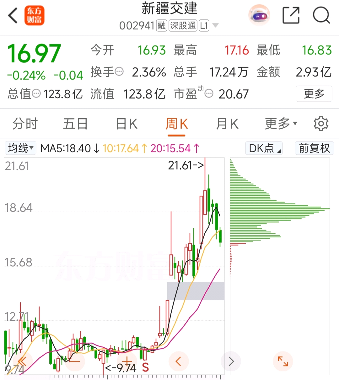 $新疆交建(SZ002941)$ 周线已经破位,短期看到15,也就是10个点跌幅,减持期间阴跌按10个点算,也就是14块左右建仓才可以,新疆是长线看好的。当然如果打算拿几年不动,这个价位确实没问题,最多一年肯定解套。
