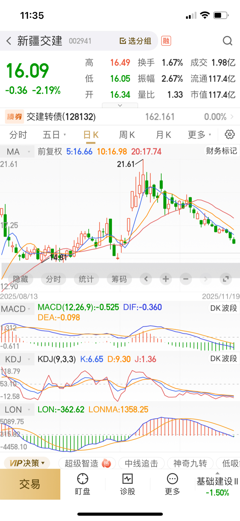 $新疆交建(SZ002941)$ 感觉这种形态单边下跌,完全还没有止跌,没有到底的迹象,周线也不用说了,周线也是难看得很