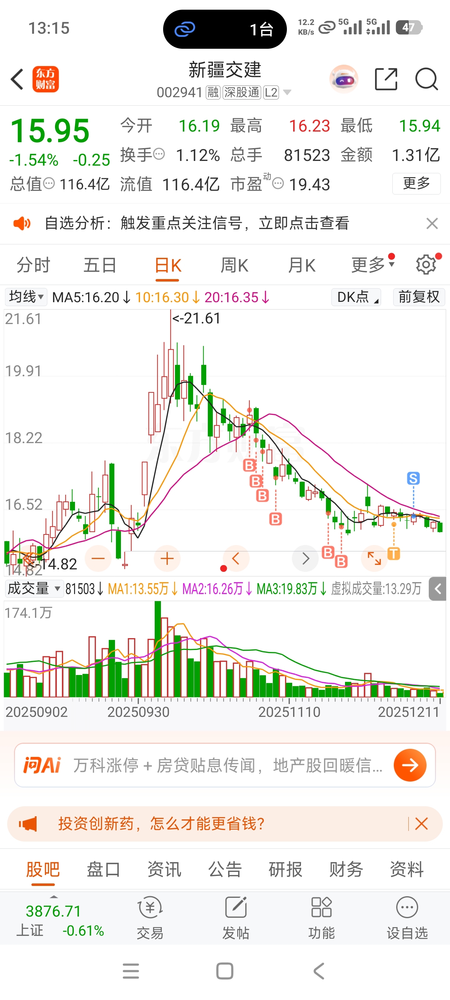 $新疆交建(SZ002941)$ 亏3万,全卖了,哎