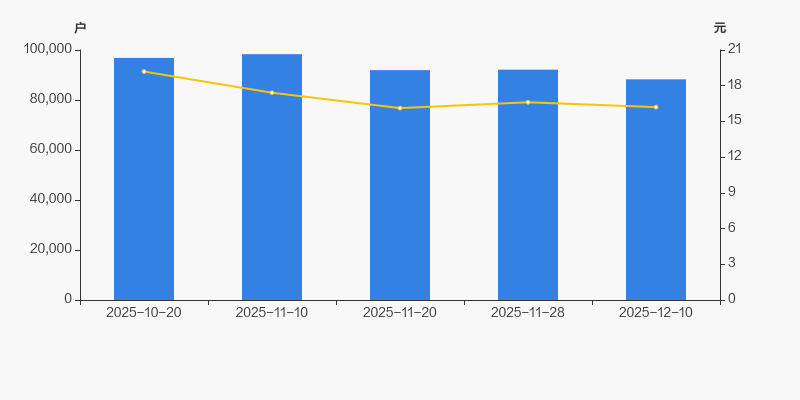 2025年10月20日至今,公司股东户数有所下降,区间跌幅为8.85%。2025年10月20日至2025年12月10日区间股价下降15.58%。