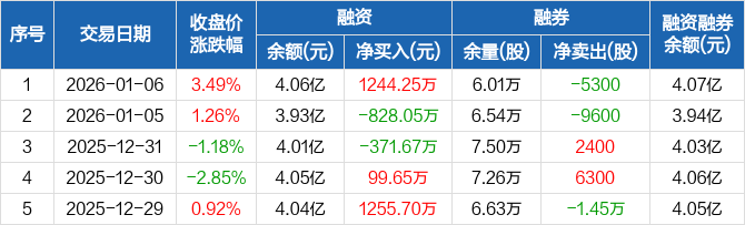 新疆交建:融资净买入1244.25万元,融资余额4.06亿元(01-06)