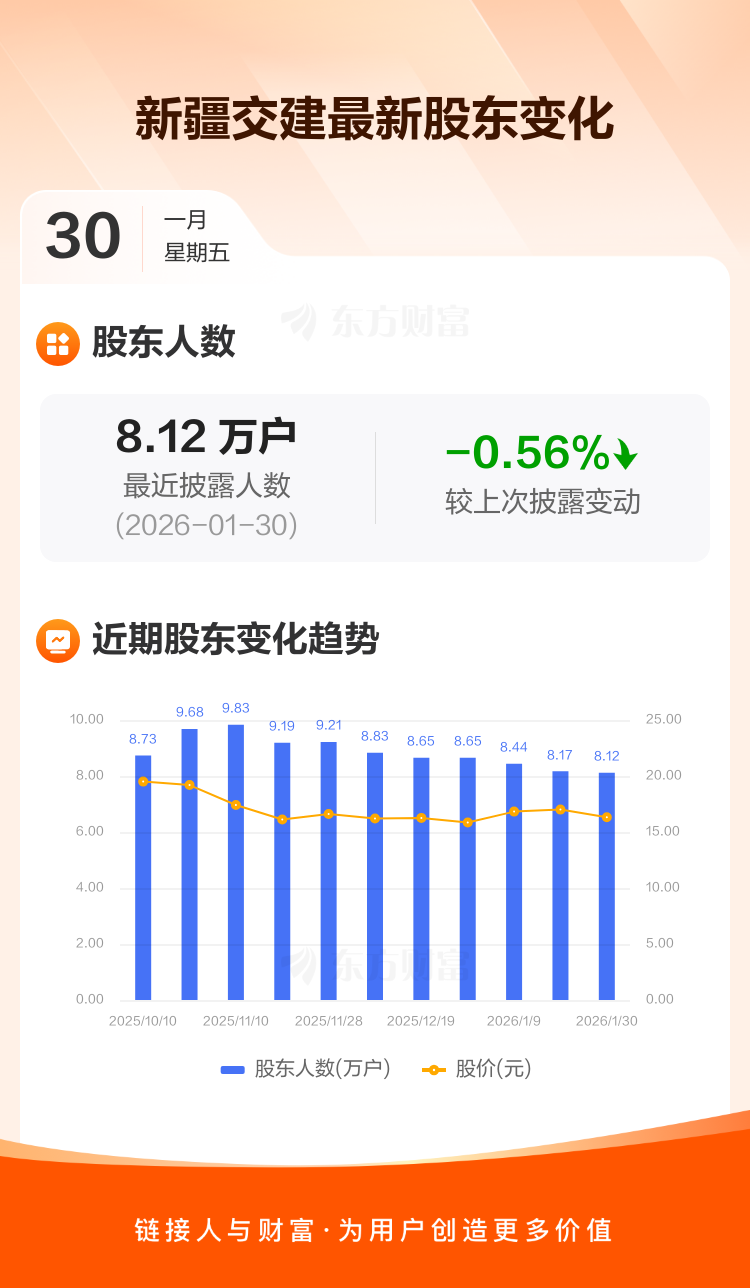 新疆交建:截至1月30日最新股东户数8.12万户,较上期减少0.56%