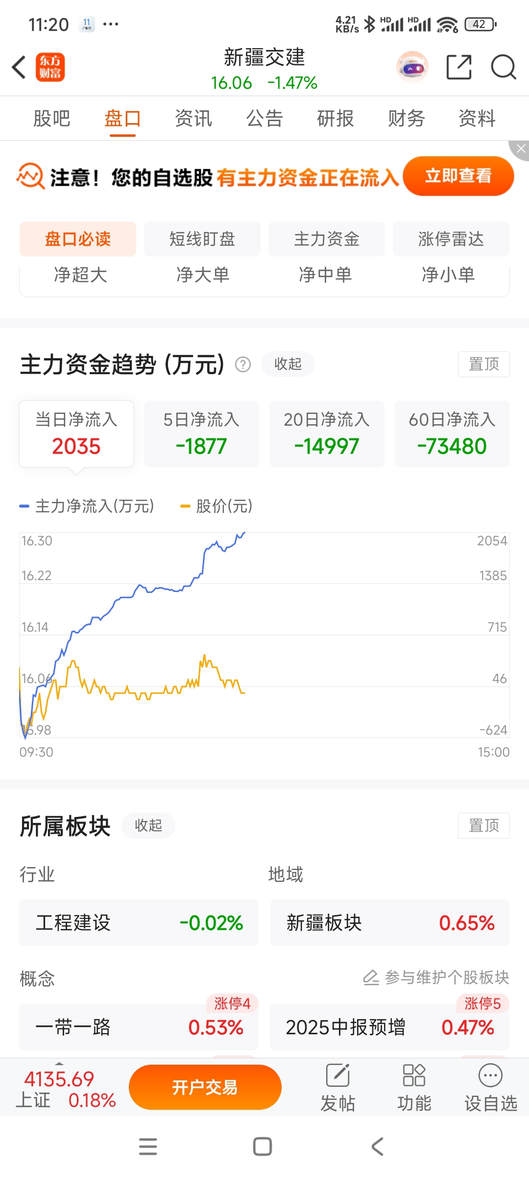 $新疆交建(SZ002941)$ 资金在流入,股价哐哐跌,剪刀差太大了