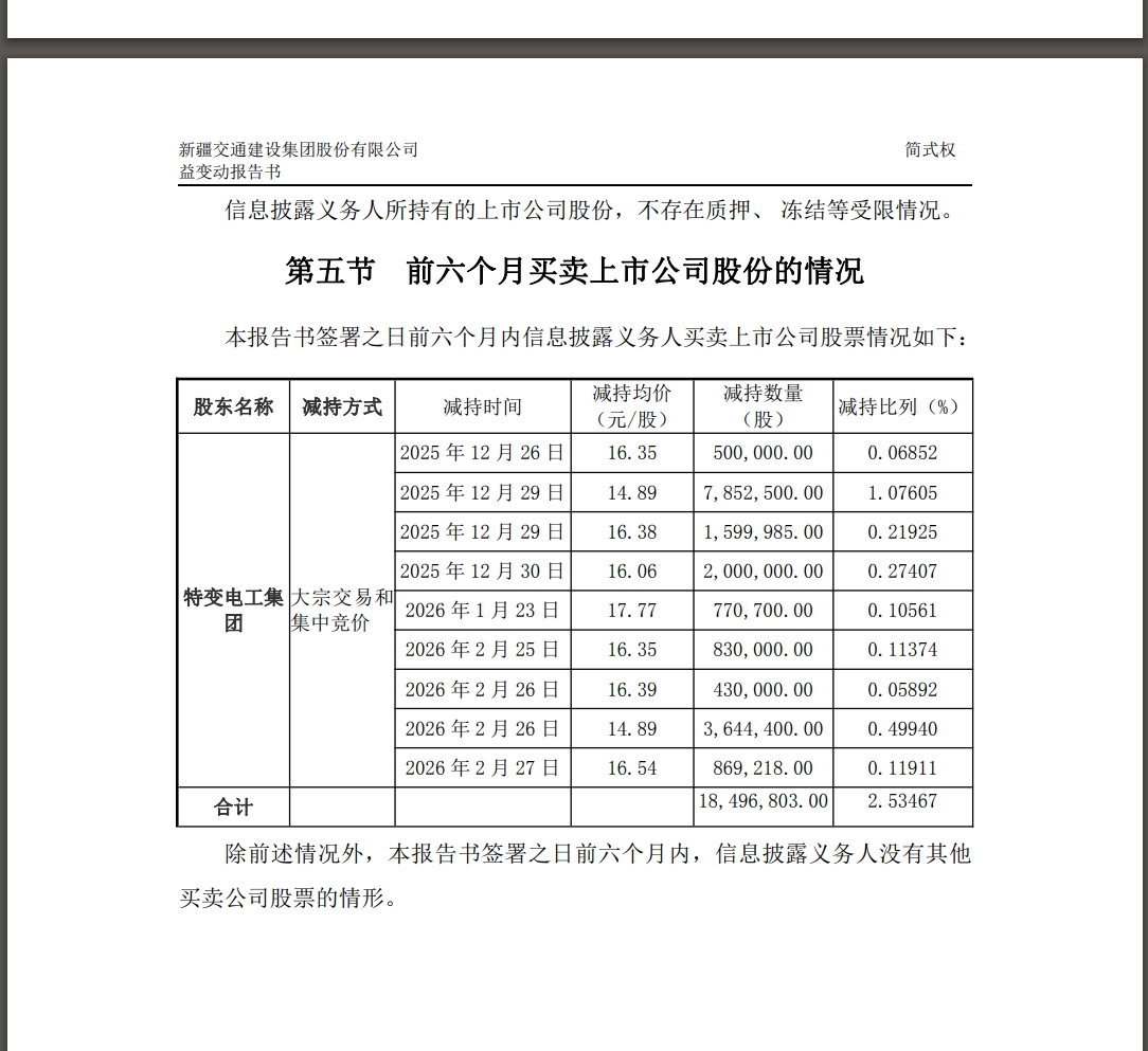 $新疆交建(SZ002941)$ 1月23日减持基本减持在高位