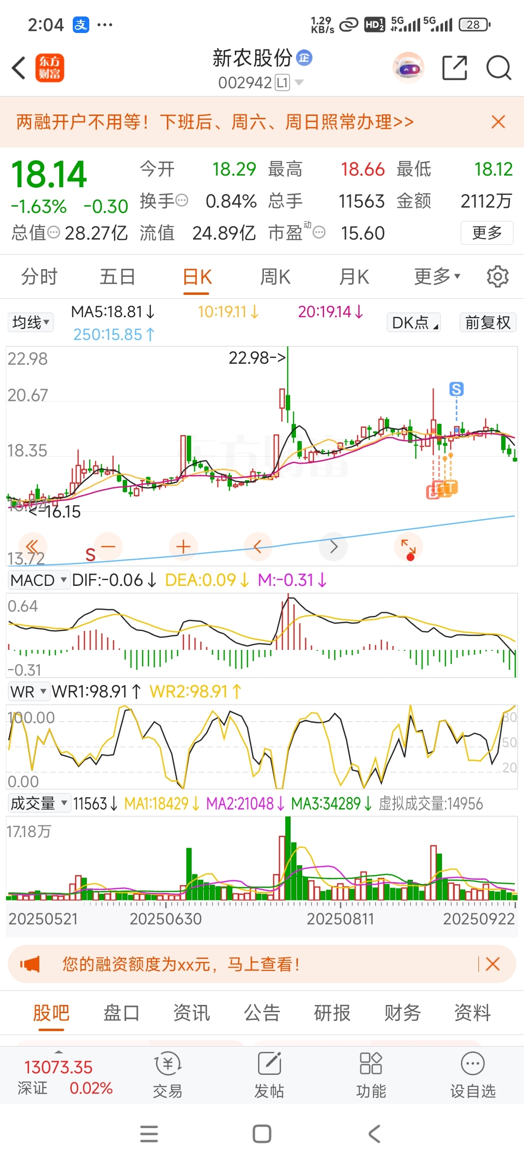 $新农股份(SZ002942)$ 还好我吃一口就跑了