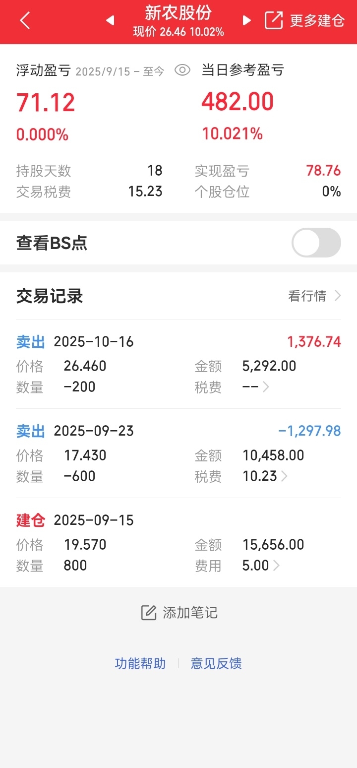 $新农股份(SZ002942)$ 买入连跌几天,差不多是阶段最低点卖了大部分,然后就是不停涨,
