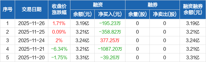 宇晶股份:融资净偿还195.23万元,融资余额3.19亿元(11-26)
