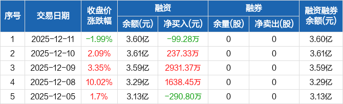 宇晶股份:融资净偿还99.28万元,融资余额3.6亿元(12-11)