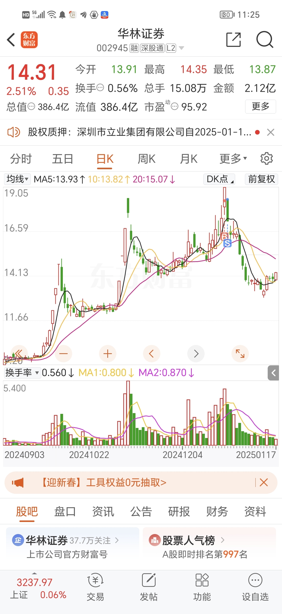 $华林证券(SZ002945)$ 现在证券板块在涨的都是超跌的票,没有超跌也是低吸。前期大涨回调不充分的涨不动了