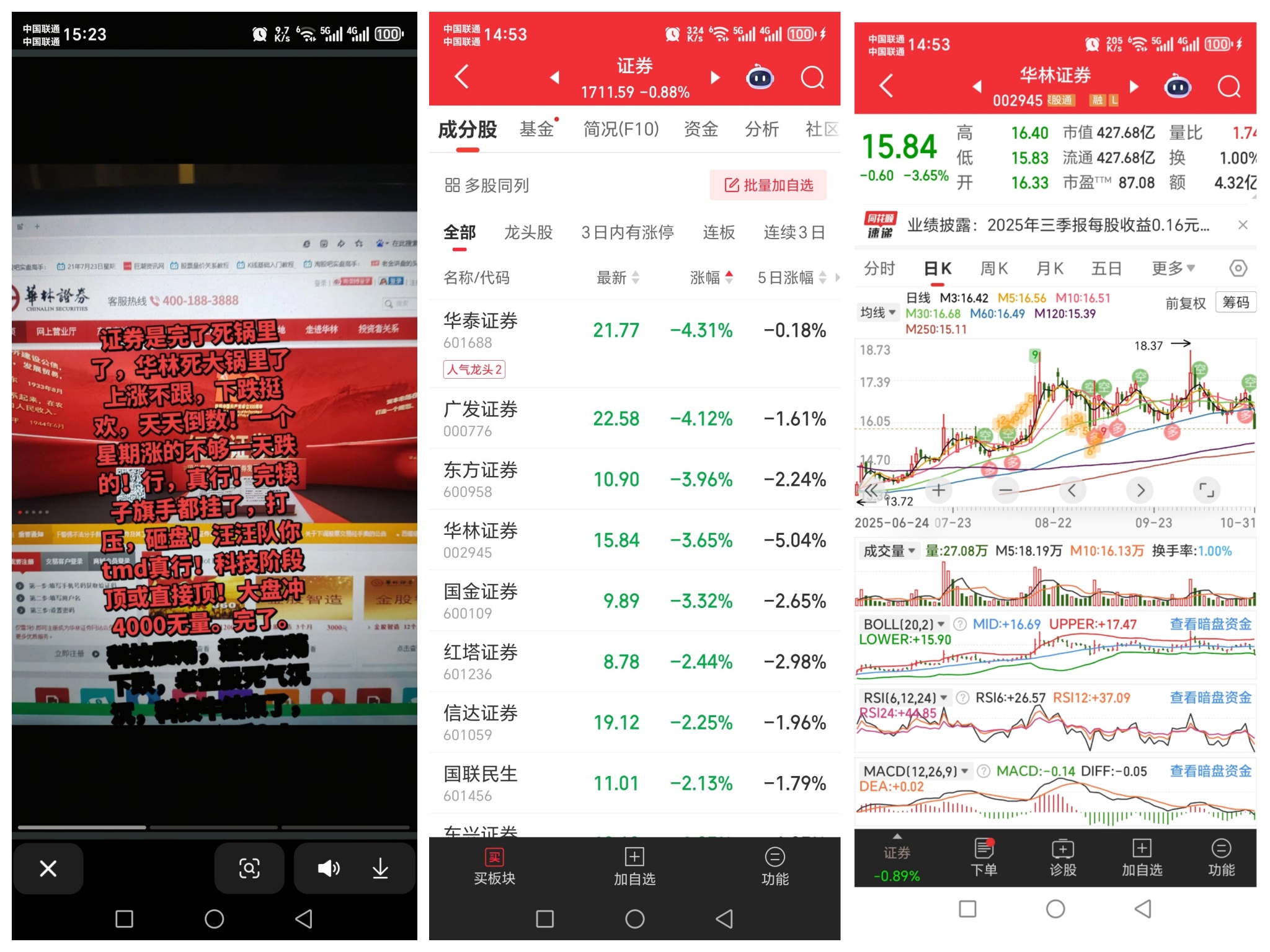 完犊子了,科技要崩了,证券以华林为首,直线带崩