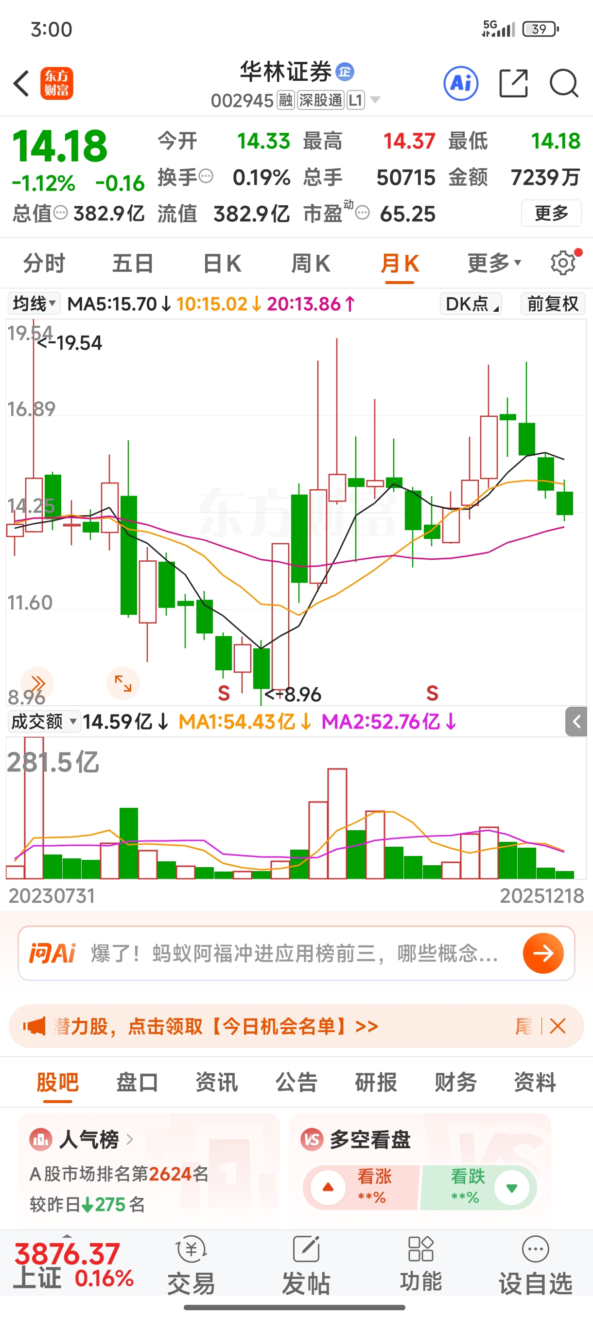 $华林证券(SZ002945)$ 看看它的风险大还是机会大