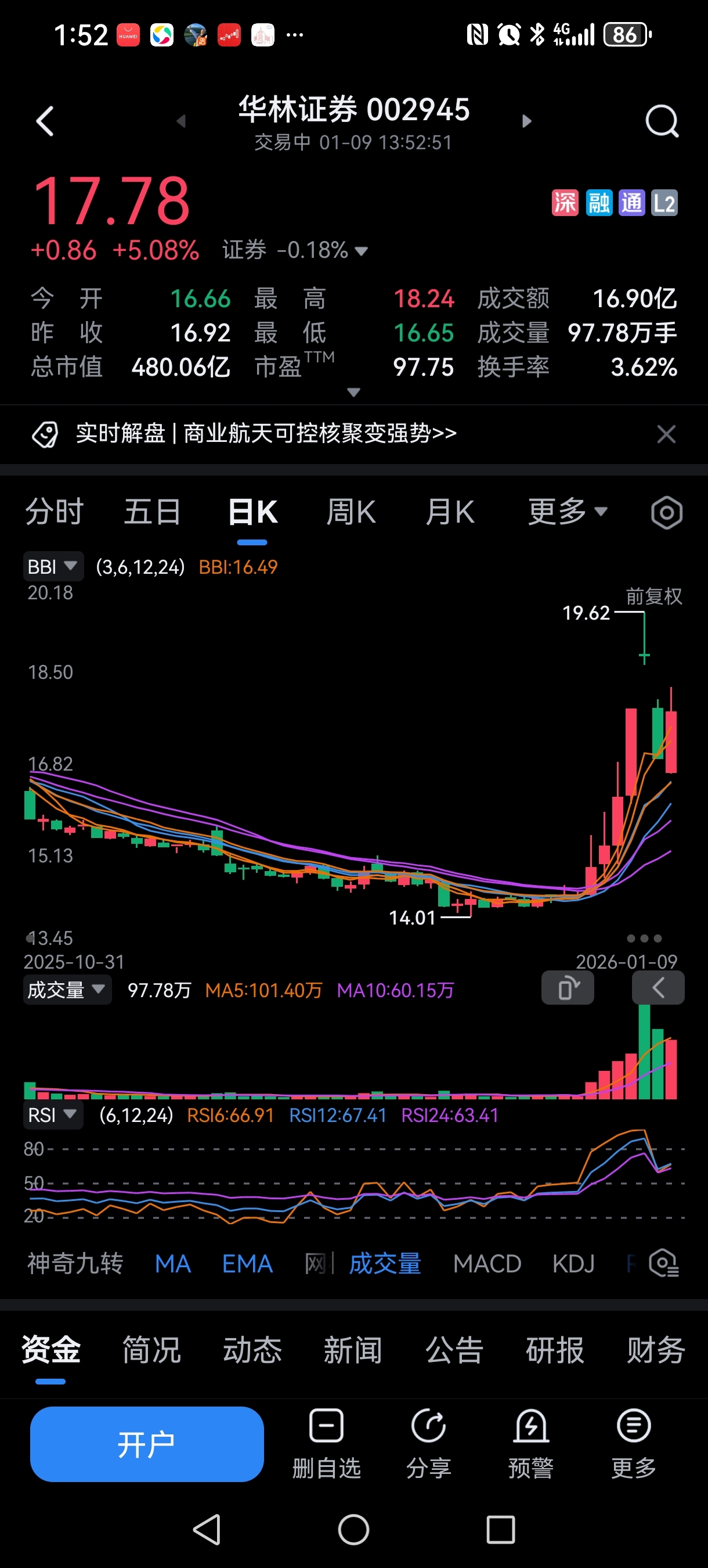 $华林证券(SZ002945)$ 证券股在这次牛市里,一直是被压制的板块,华林估计又是长时间的调整。
