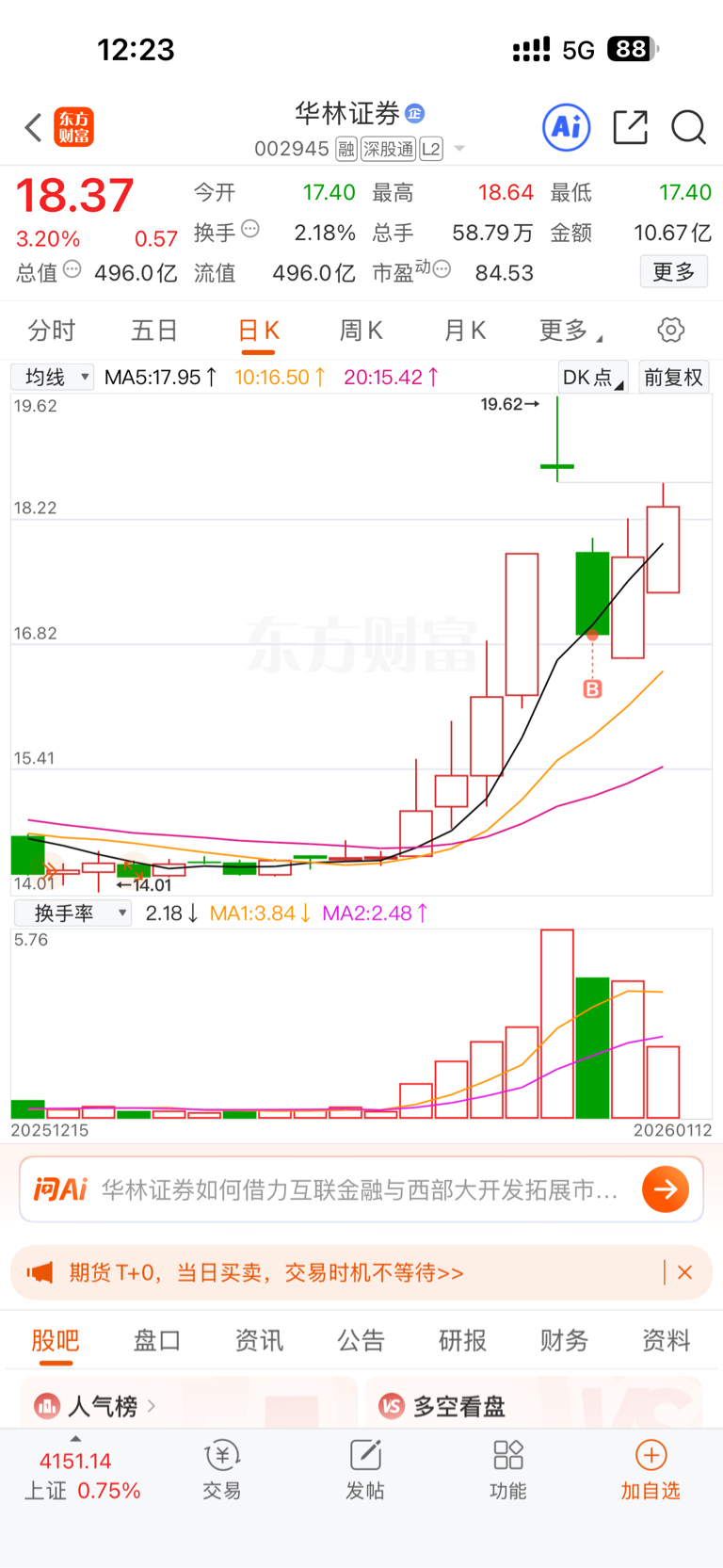 $华林证券(SZ002945)$ 两天八个点,还可以