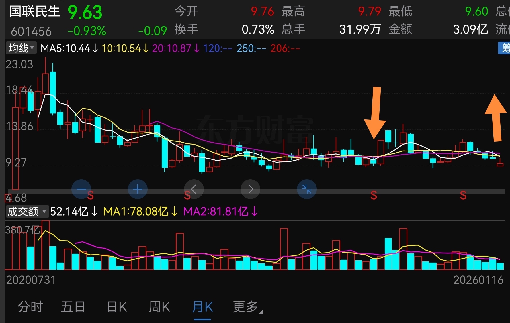 国联民生业绩暴增会诱发量化和技术散做补涨行情(大均线三重底背离),跟中国电建和中