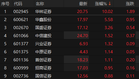 证券板块拉升 华林证券午后涨停